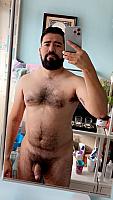 Looking very hot. Great Hairy body with a beautiful cock. 👍 Nice beard as well.