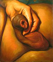 I think she should look at the great cock she is about to enjoy. When she can watch your great gland push its way past your foreskin. Then she can coax a great load for her enjoyment.